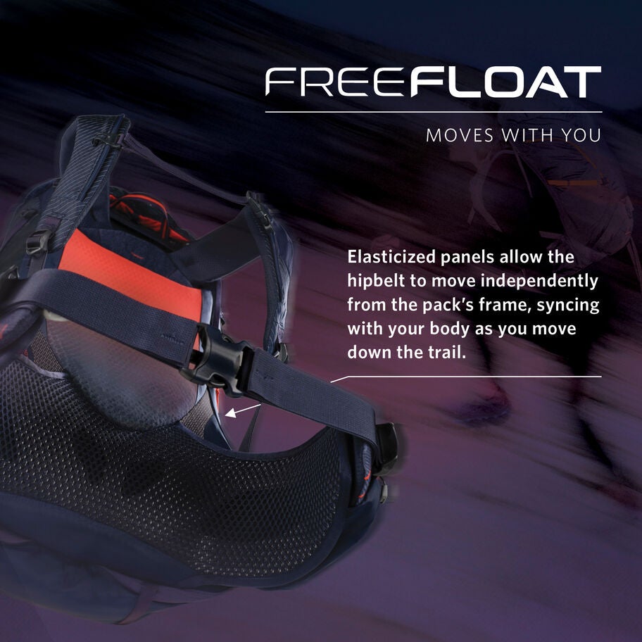 FreeFloat dynamic hipbelt flex panels that move with the natural movements of your body