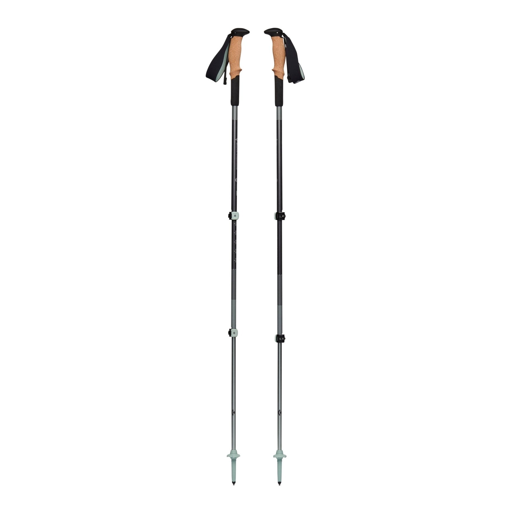 BD proprietary grip geometry and shape, with two grip sizes optimized for larger and smaller hands, make for more comfortable hand positions as well as reduces hand fatigue. Natural cork grips manage moisture while extensions – made from Bloom, an algae infused foam – provide additional hand positions on steep ascents. Hidden beneath the grip and the grip extension is a newly designed shock system that dampens vibrations to help reduce joint pain. Also included are Solution 2.0 wrist straps, made from post-consumer recycled fi bers, and a thoughtfully-designed, soft-touch FlickLock+ for quick and easy adjustments.