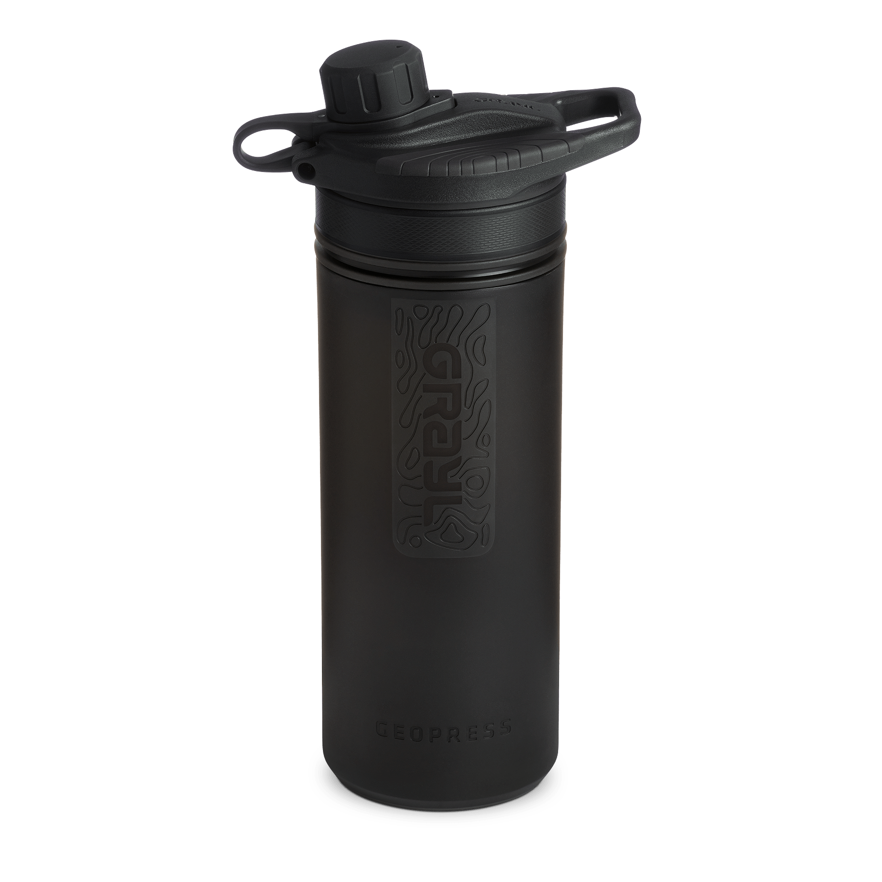 Tonal colorways with a low-vis black cartridge. Requires zero setup time and makes 24 fl. oz. of clean filtered and purified drinking water blazingly fast. An industry first, it's also compatible with electrolytes and drink mixes for faster, healthier hydration when on-the-go!