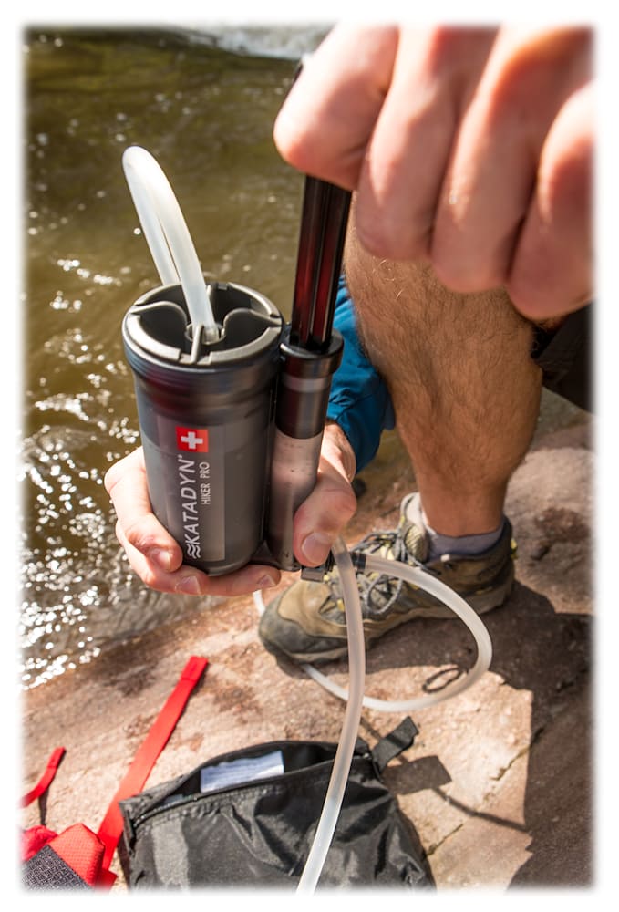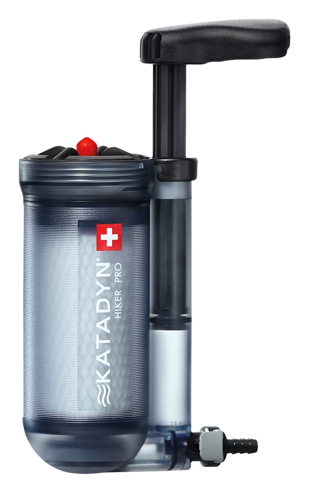 A high-performance version of the Hiker, the Katadyn® Hiker Pro Microfilter gives you longer cartridge life with the same easy-to-pump water filtration. The Hiker Pro comes with a Filter Protector to extend cartridge life and quick-release hoses for easy packing. This easy-to-use system also features a hydration adapter that connects directly to most hydration packs. The filter cartridge's carbon core reduces chemicals and makes water taste fresh. Lightweight design makes it easy to pump at up to 1L/minute. Replaceable cartridge capacity: up to 1,150L, depending on water quality (more when using Filter Protector, included). Includes bottle adapter, modular pre-filter, and carry case. 6.5"L x 3"W x 2.4"D. 11 oz.
