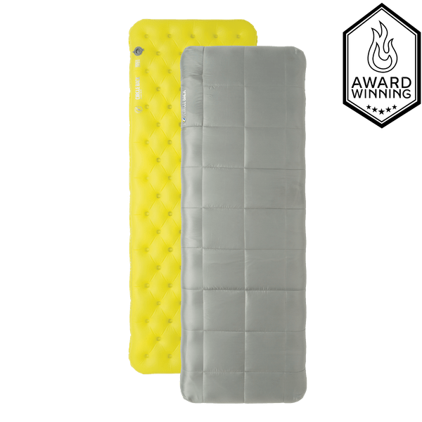Sustainable sleeping pad bladder with insulated cover designed for premium feel, maximum comfort, and reliable performance