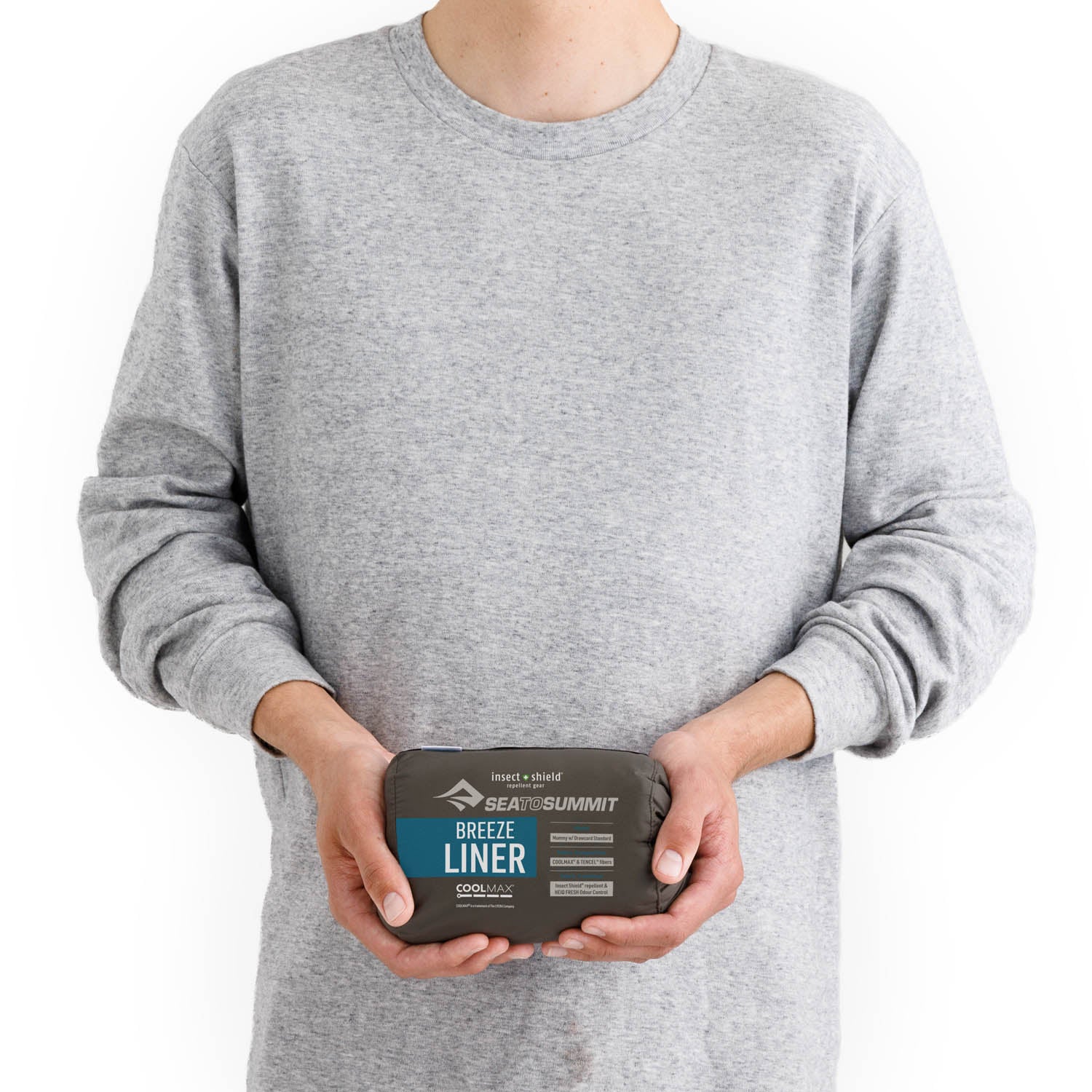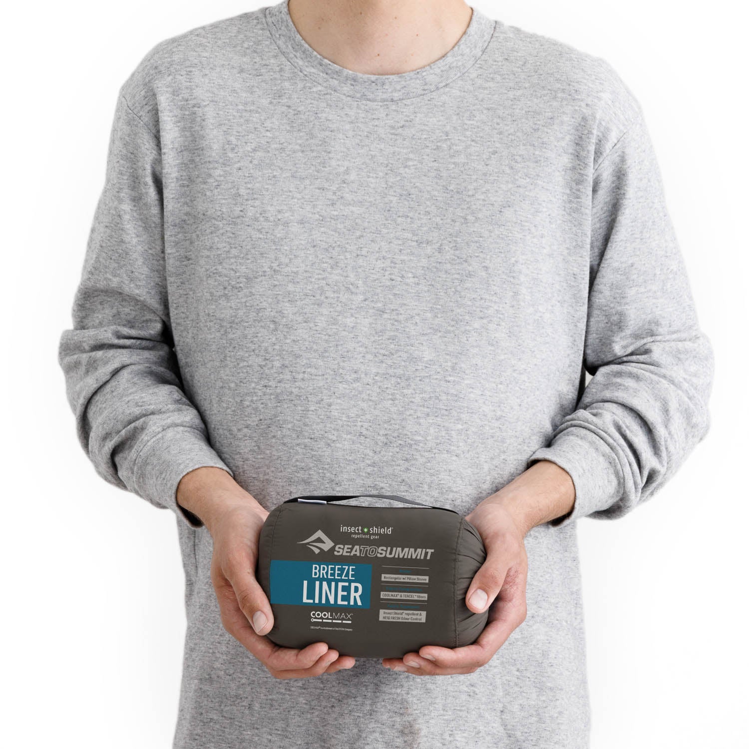 Available in both a Mummy version with a drawcord base, and a Rectangular model with a pillow sleeve, the stretch-knit fabric offers incredible freedom of movement. In humid conditions, the blend of 70% Coolmax Ecomade and 30% biobased Tencel Lyocell fibres wick moisture effectively to prevent you feeling clammy. Outdoor users will usually opt for the Mummy version - in especially buggy environments the Insect Shield® treatment repels certain bugs to provide greater confidence. And for those travelling, the Rectangular model has a built-in pillow sleeve that fits an Aeros Pillow perfectly. Rest assured you will have a hygienic sleep environment wherever you rest your head.