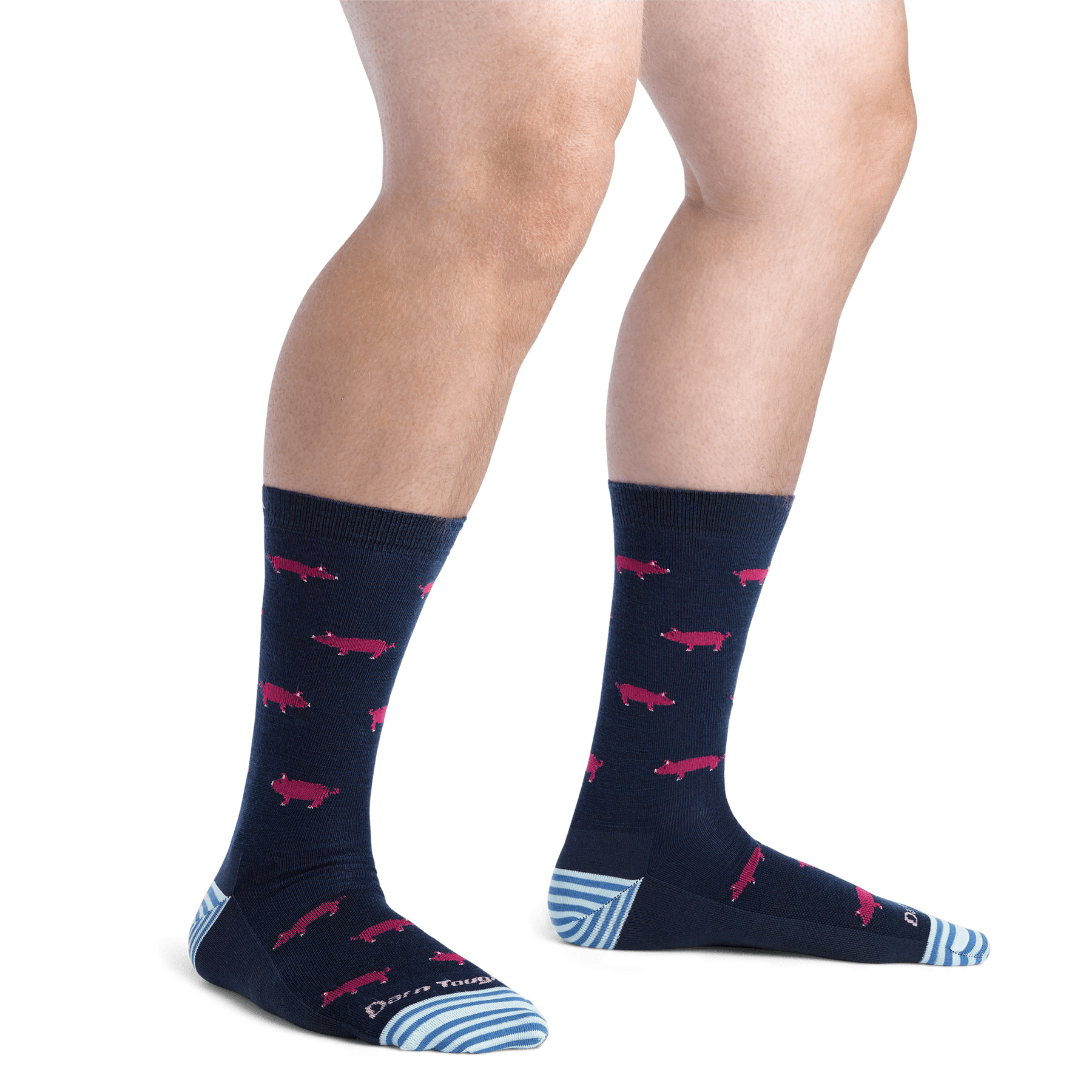 While their porcine counterparts follow their noses to root out delicious fungi, throw on a pair of our Truffle Hog everyday socks your toes will lead you down Comfort Lane. A lightweight crew sock suitable for the Orwellian workplace, but naturally odor-resistant so you don't need to ration their use. These Merino Wool companions feature a pig print that can inspire you the next time you're foraging for truffles, morels or something a little trippier.