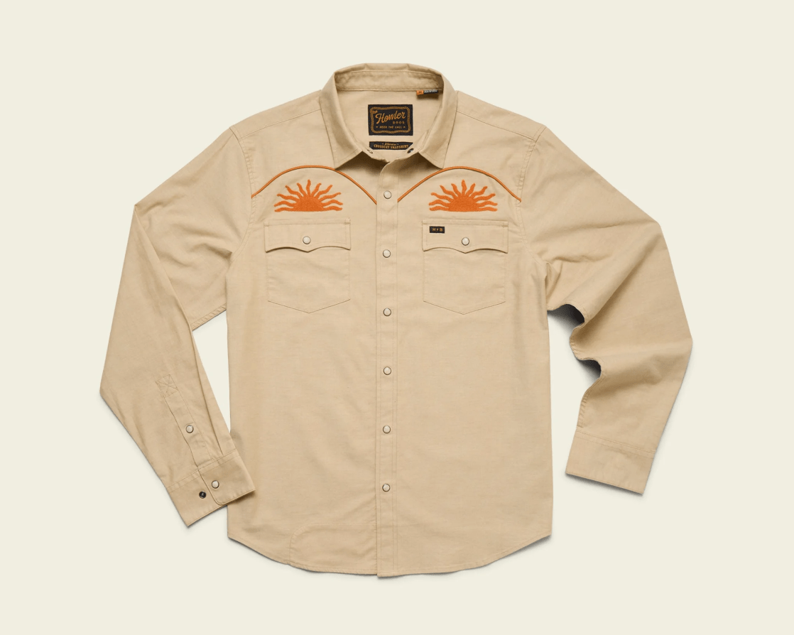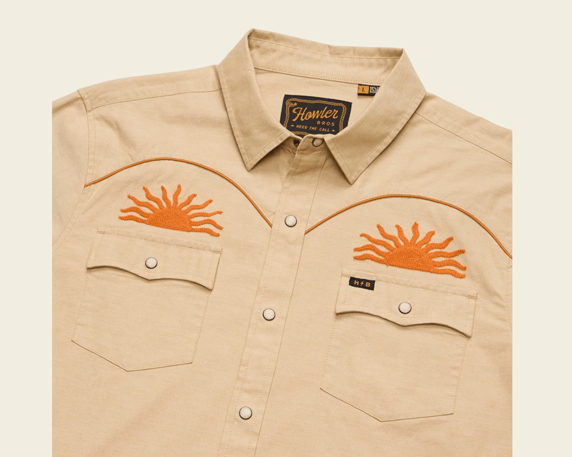 The Crosscut Deluxe is the most sought after item in our fall line year in and year out. Yes, the vintage inspired motif embroidery makes a big statement but so too do the bountiful pearl snaps, western yokes and robust stretch chambray. Collect these right along with your Gauchos for year-round Howler coverage.