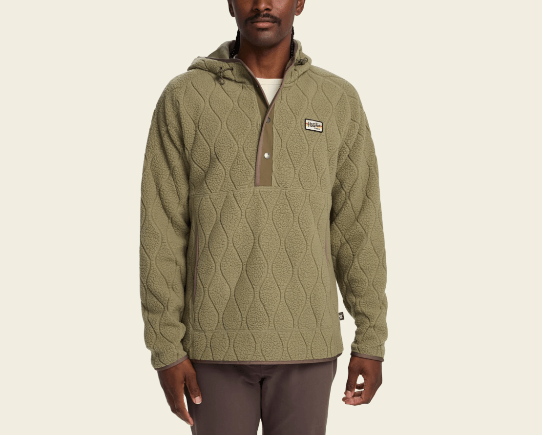 We once again expanded the Chisos fleece family for fall 2025 by adding this delightful new hooded offering—the Chisos Hooded Pullover. Made of super warm 100% polyester high pile fleece with a 4 button placket and big ol' kangaroo pockets for your hands. We guarantee your fleecy satisfaction no matter where you take this thing.