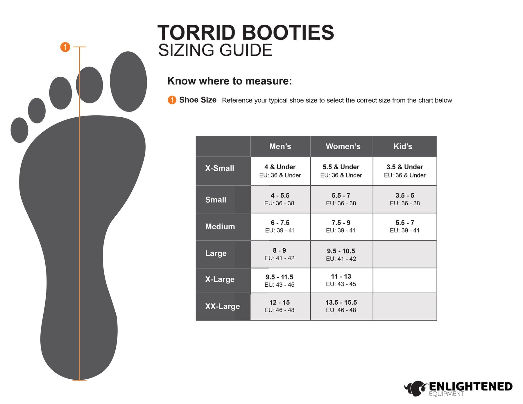 The ankle closure features a thin shock cord and cordlock to secure the Torrid Booties on your feet. When you’re not using them, the Torrid Booties pack down small to fit just about anywhere in your pack. Like any sock, Torrid Booties aren’t meant for walking around outside your shelter.