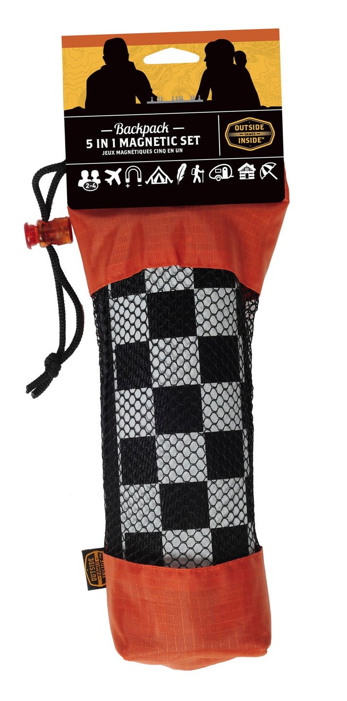 This Roll-up magnetic 5 in 1 game kit is an absolute vacation essential that offers loads of family fun anywhere at any time. Suitable for most all ages, this kit has magnetic pieces that stay put when the fun takes you to bumpy places!