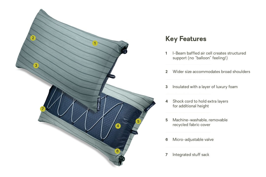 Just like the classic Fillo, this wider version is made with an interior baffled air cell to help it retain its shape and includes a thick layer of luxury foam for cushy give. Compressing to roughly the size of a grapefruit, Fillo Wide is amazing in the backcountry but equally good on an airplane or as lumbar support at home, as well!