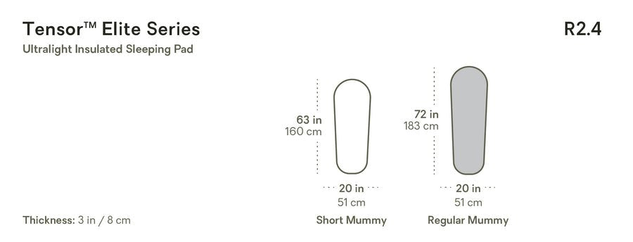 The lightest Tensor ever made, Tensor™ Elite is NEMO’s sleeping pad solution for hyper-streamlined hikers. Offered only in gram-shaving mummy silhouettes, the 2.4 R-value pad is made using 10D CORDURA® nylon to protect from punctures and insulated with a single layer of Thermal Mirror™ film for an ethereal 240-gram weight.