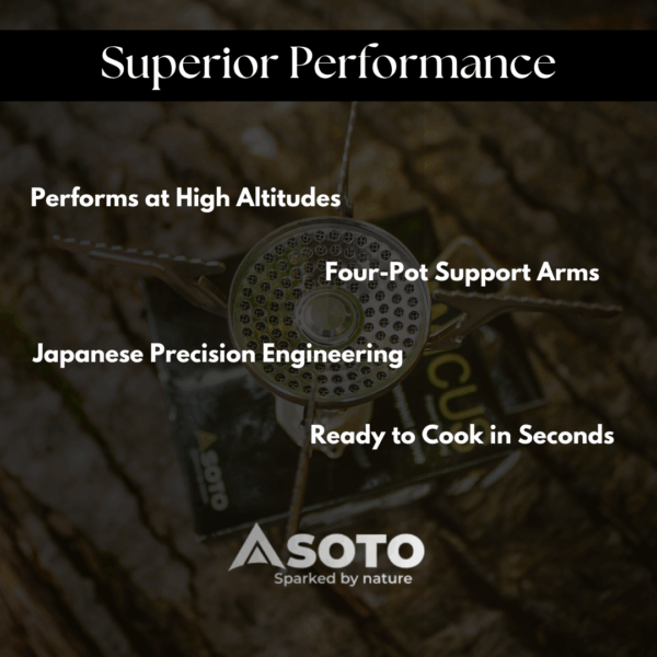 - Easy Flame Control & Fuel Efficient: Adjust the flame precisely to suit various cooking needs, from simmering stews to boiling water, thanks to its user-friendly flame control settings. Optimized for fuel efficiency, the SOTO backpack stove consumes less fuel while providing maximum heat output, reducing your overall fuel needs during trips.