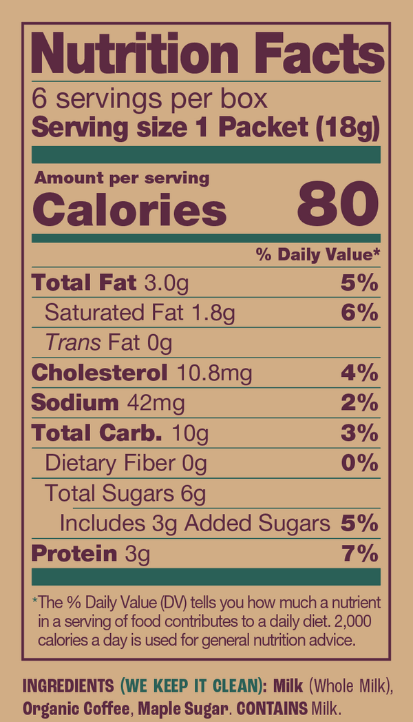 Ingredients: Milk (whole milk), Organic Coffee, Maple Sugar.