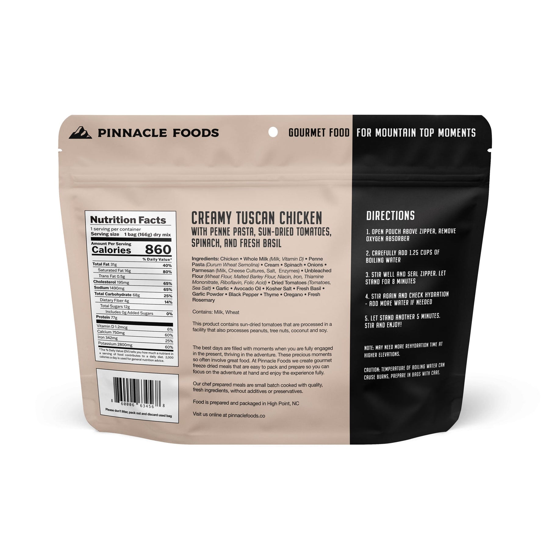 Roasted chicken marinated in fresh herbs and garlic with Italian Penne Rigate Pasta, organic sun-dried tomatoes and spinach mixed in a rich garlic-parmesan cream sauce and finished with fresh basil