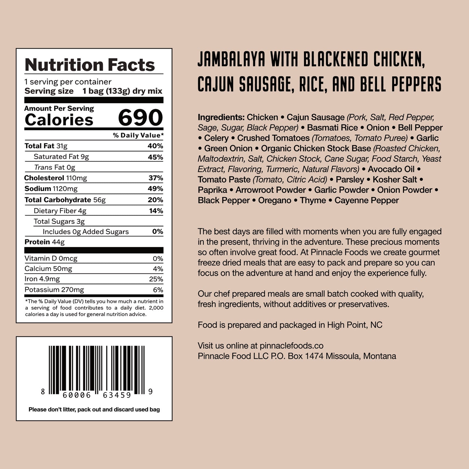 This premium meal combines tender blackened chicken and flavorful Cajun sausage with fluffy rice and roasted bell peppers, all infused with authentic Cajun spices. The freeze-drying process locks in rich, smoky flavors and ensures a lightweight, easy-to-prepare meal that’s perfect for your adventure. Just add boiling water, and enjoy a hearty, satisfying dish that brings the taste of New Orleans right to your campsite. Fuel your journey with a meal that’s as exciting as the destination.