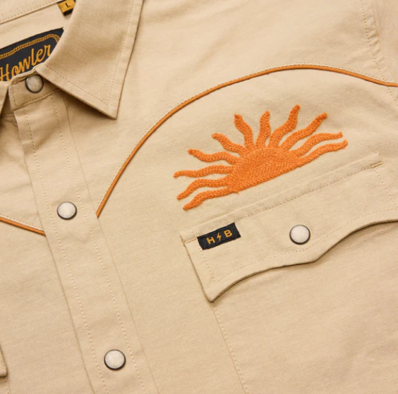 The Crosscut Deluxe is the most sought after item in our fall line year in and year out. Yes, the vintage inspired motif embroidery makes a big statement but so too do the bountiful pearl snaps, western yokes and robust stretch chambray. Collect these right along with your Gauchos for year-round Howler coverage.