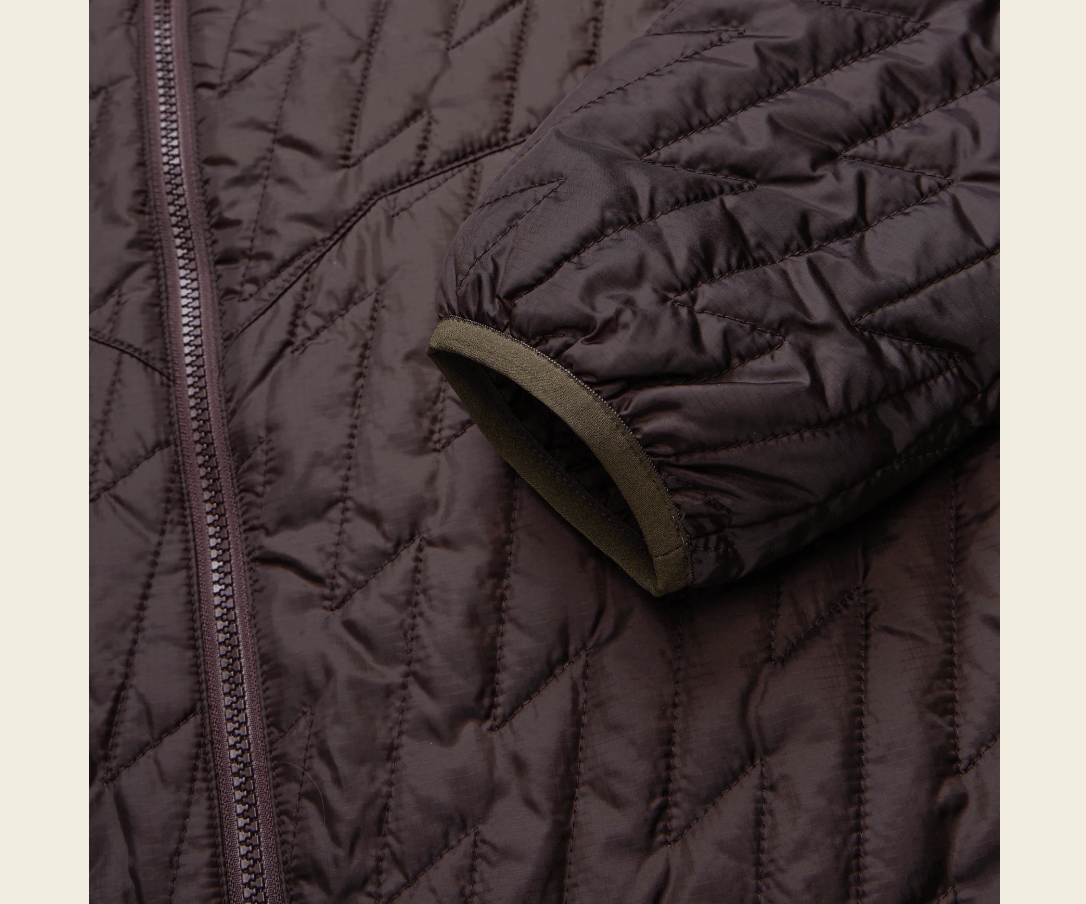 The Voltage Quilted Jacket is supercharged with 60 gram lightweight insulation stuffed into our unique “lightning” quilted polyester rip stop shell. It packs down to nearly nothing and works like a dream under a shell or stand alone.