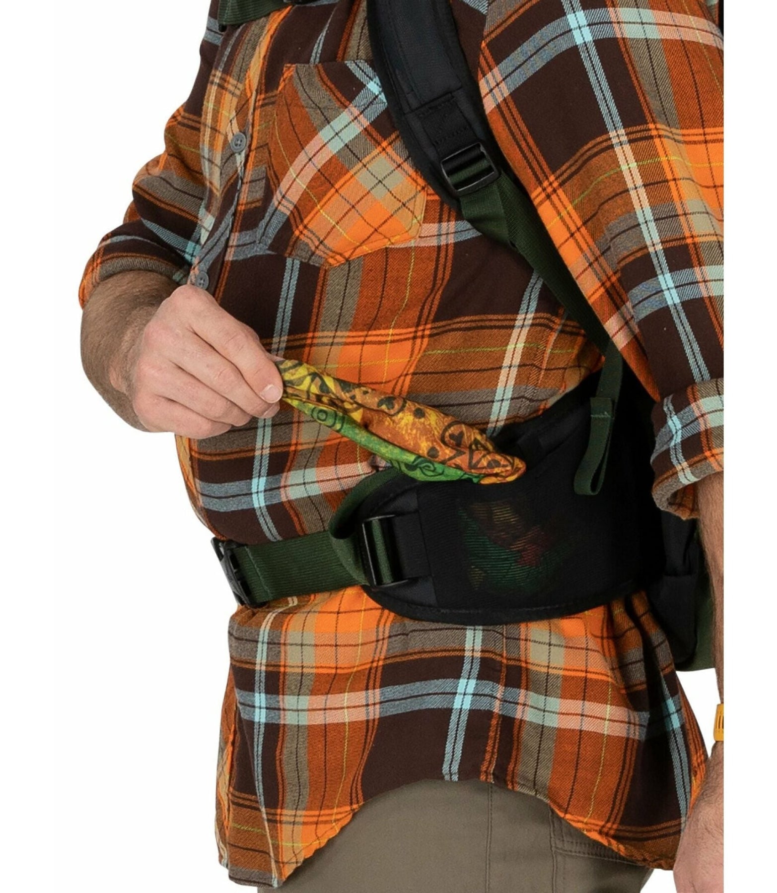 The harness stows away for safekeeping while checked and deploys quickly for any path or trail.