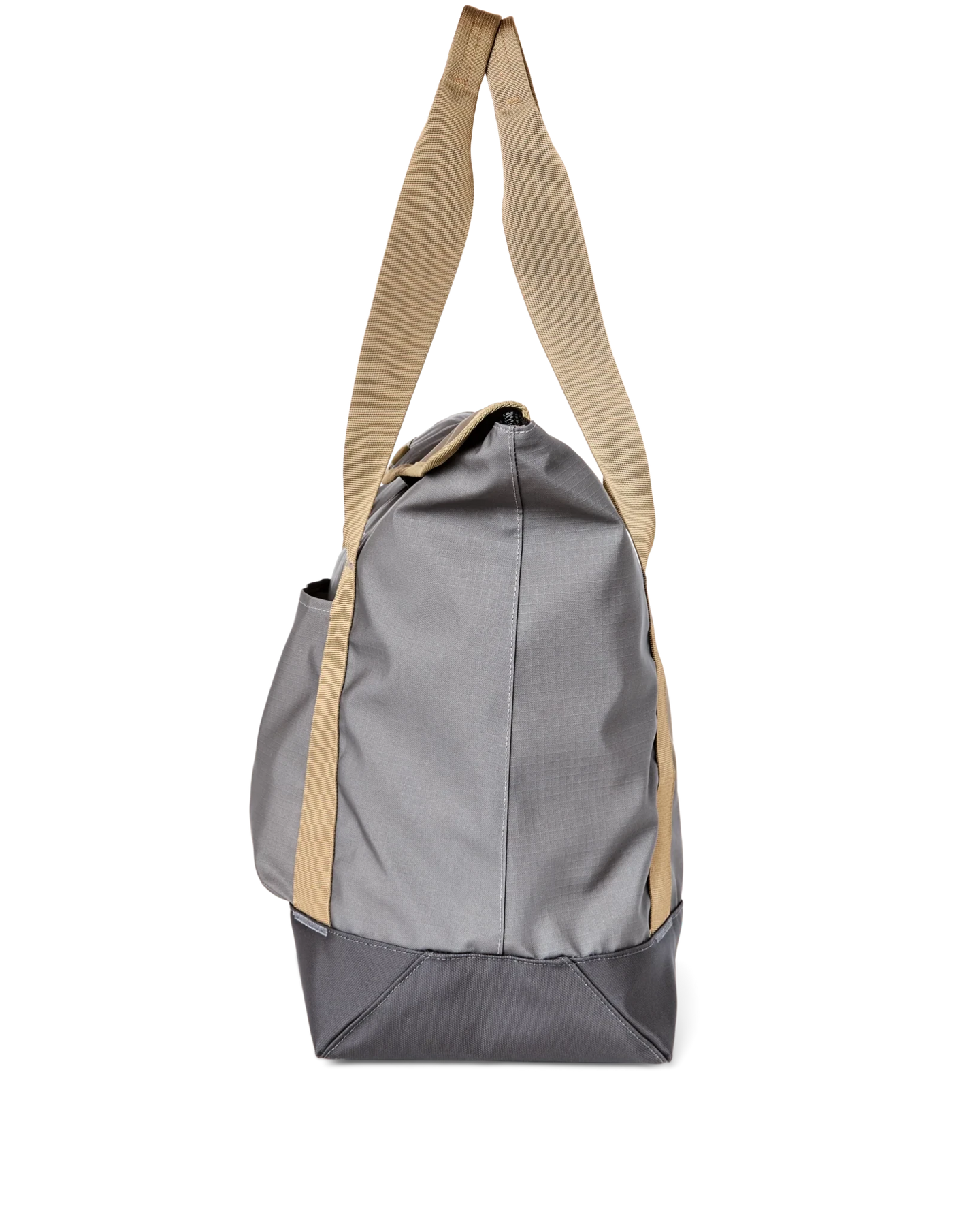 This versatile tote is made to keep gear dry through any weather. The main material is 300D polyester ripstop and the bottom boot is heavy-duty 600D polyester Oxford cloth. These fabrics are made with fully recycled material and treated with thermoplastic polyurethane (TPU) for water resistance.